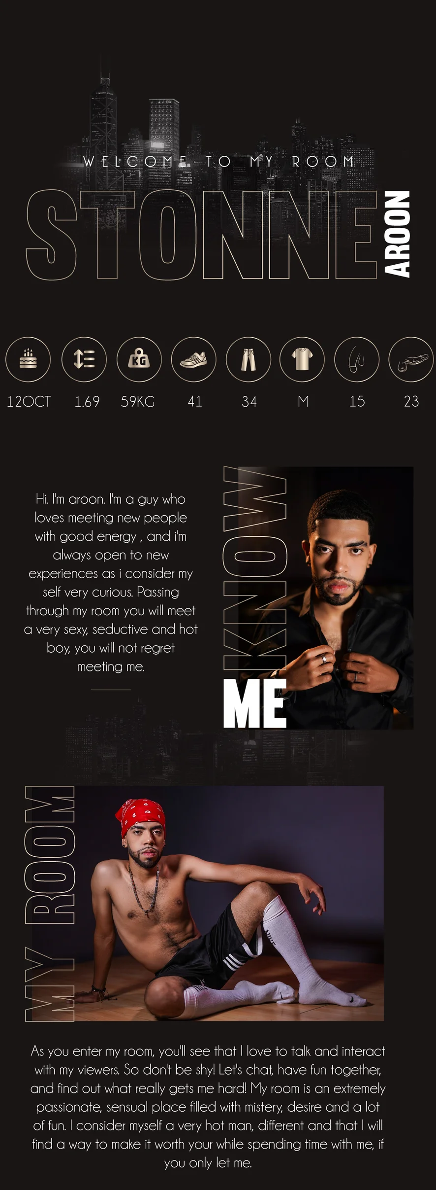 My name is Aroon, I am a very sensual and provocative boy, willing to please everyone who is kind to me and helps me fulfill my dream. I really like reading and discovering new adventures that lead me to eroticism.
